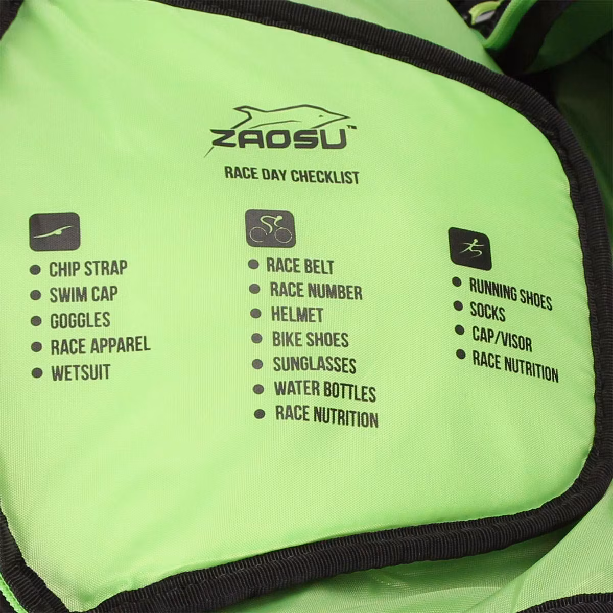 I den nya Zaosu Transition Bag Elite simväska kan du verkligen lagra allt du behöver för tävling eller träning. Denna triathlonryggsäck har plats för din hjälm, våtdräkt, cykling, löparskor, simglasögon, solglasögon, trisuit och alla andra saker du behöver för tävlingsdagen.